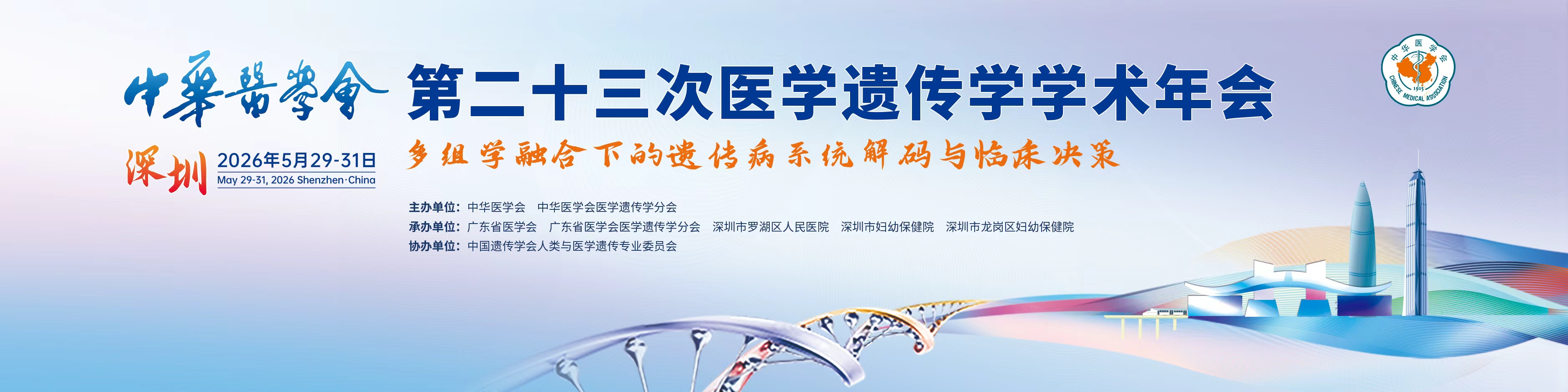 由中华医学会和中华医学会医学遗传学分会主办的中华医学会第二十三次医学遗传学学术年会定于2026年5月29日-31日在广东省深圳市举办,本次大会将以“多组学融合下的遗传病系统解码与临床决策”为主题,就遗传病的病因学探究、临床诊断与治疗新技术及精准诊治应用等重要进展进行学术交流。